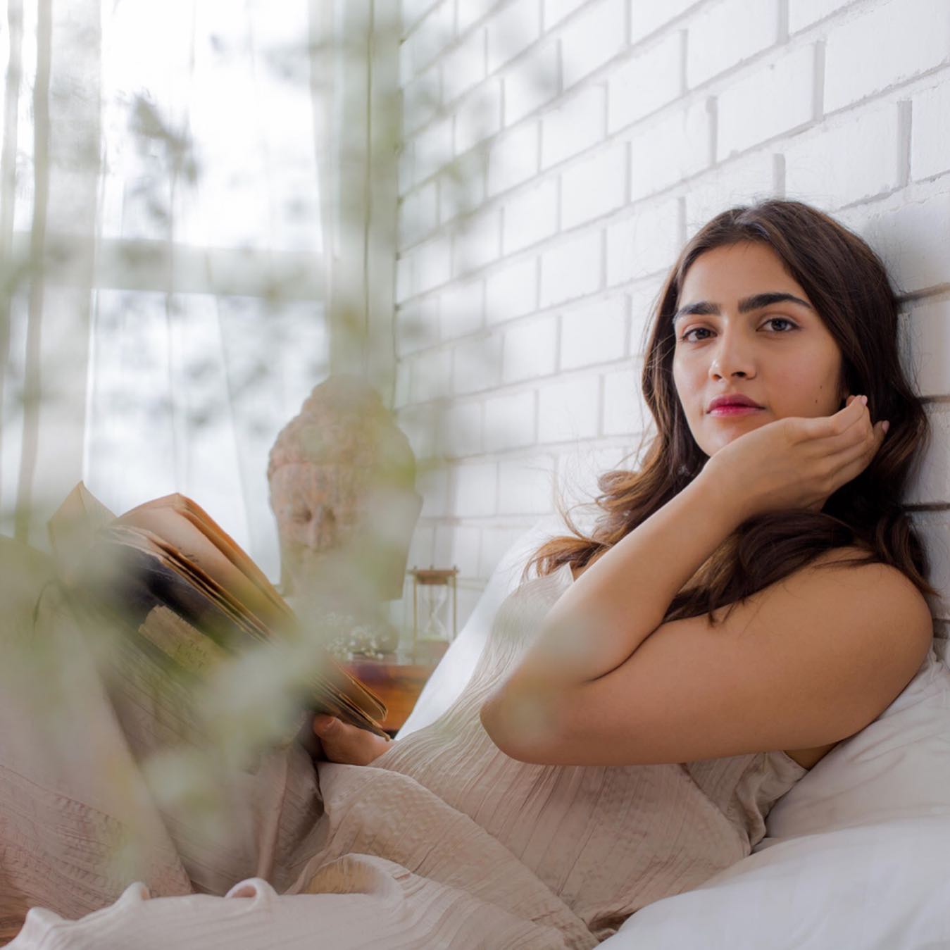 In contrast to the glamorous look, Rukmini’s casual photos bring out her soft and relatable side. Sitting comfortably with a book in hand, she appears relaxed and effortlessly stylish. The light-toned outfit paired with a minimal setting creates a calm and aesthetic atmosphere that resonates strongly with fans who love natural beauty.